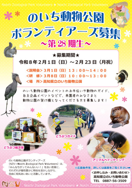 のいち動物公園ボランティアーズ 第28期生募集