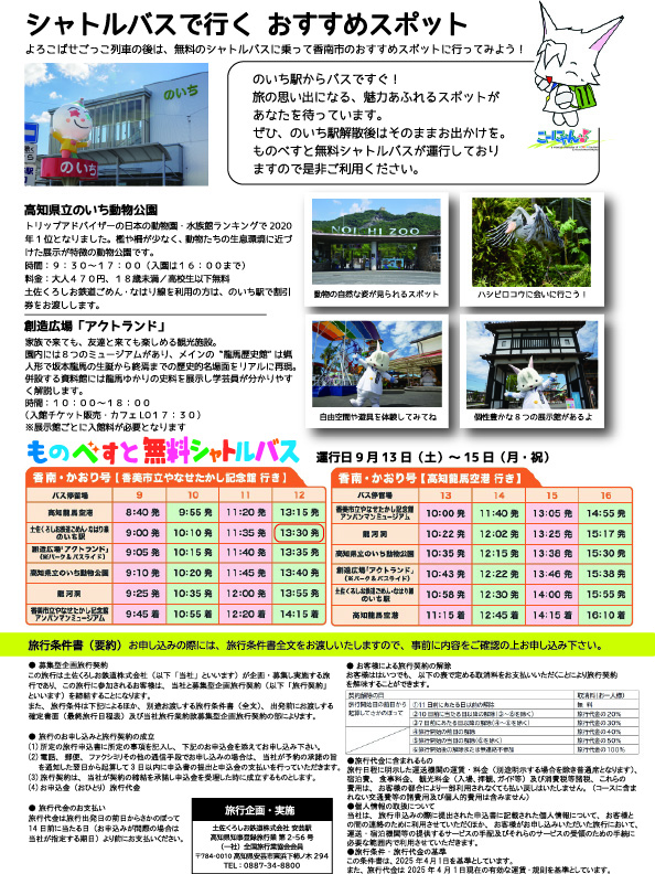 | 注意・制限事項 | 最少催行人員26名。 申込締切:9月1日(日)17:00まで |
