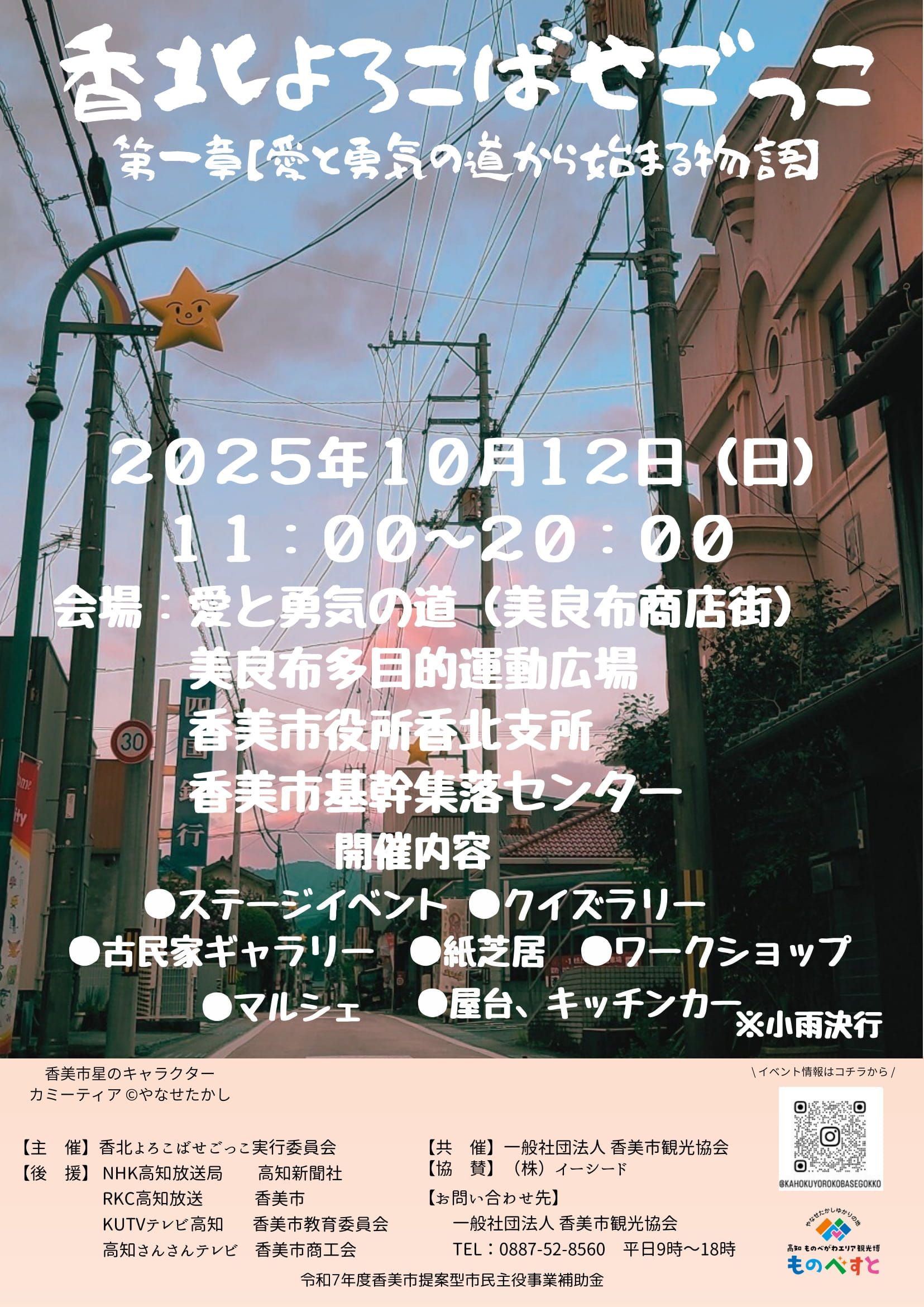 | 開催場所 | 愛と勇気の道(美良布商店街)・美良布多目的広場・香北支所前駐車場・香美市基幹集落センター |
