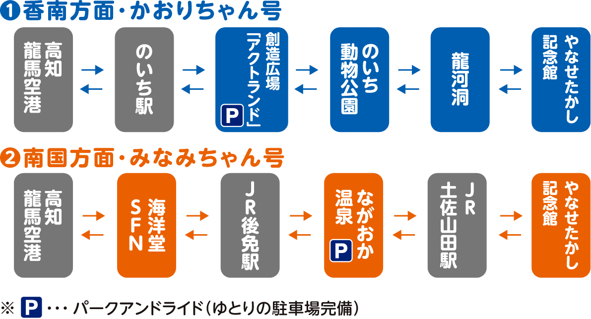 - ジェイアール四国バス大栃線(土佐山田~美良布間)とさでんバス龍河洞線(山田駅~龍河洞間)