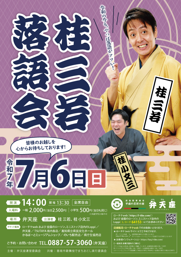 桂三若落語会、今年は桂三若さんと桂小文三さんが出演してくださいます。