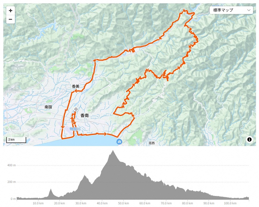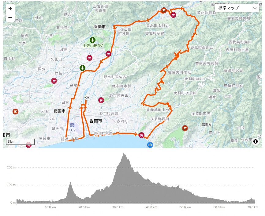両コースとも自然と歴史が薫るまち 香南市 から風に乗って走り出し、