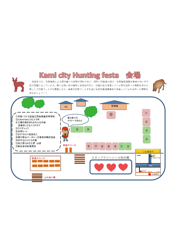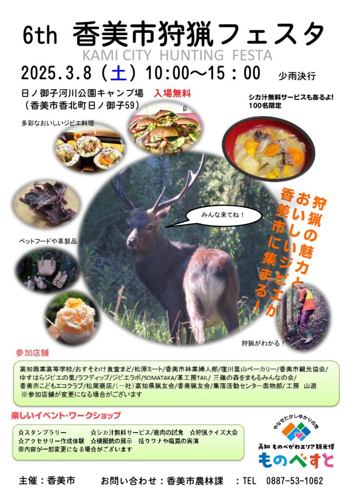 そこで、新たな担い手の確保と育成を目的に、狩猟の魅力発信とジビエ等利活用への理解を深める場として狩猟フェスタを開催します。