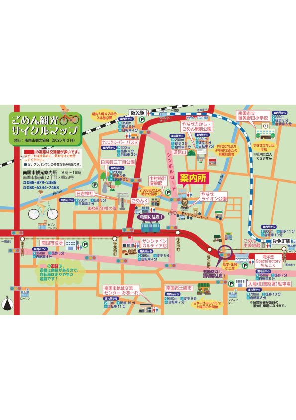 コース:南国市観光案内所→やなせライオン公園→後免町駅・ごめん生姜地蔵→やなせたかし・ごめん駅前公園→道信山→後免駅→南国市観光案内所