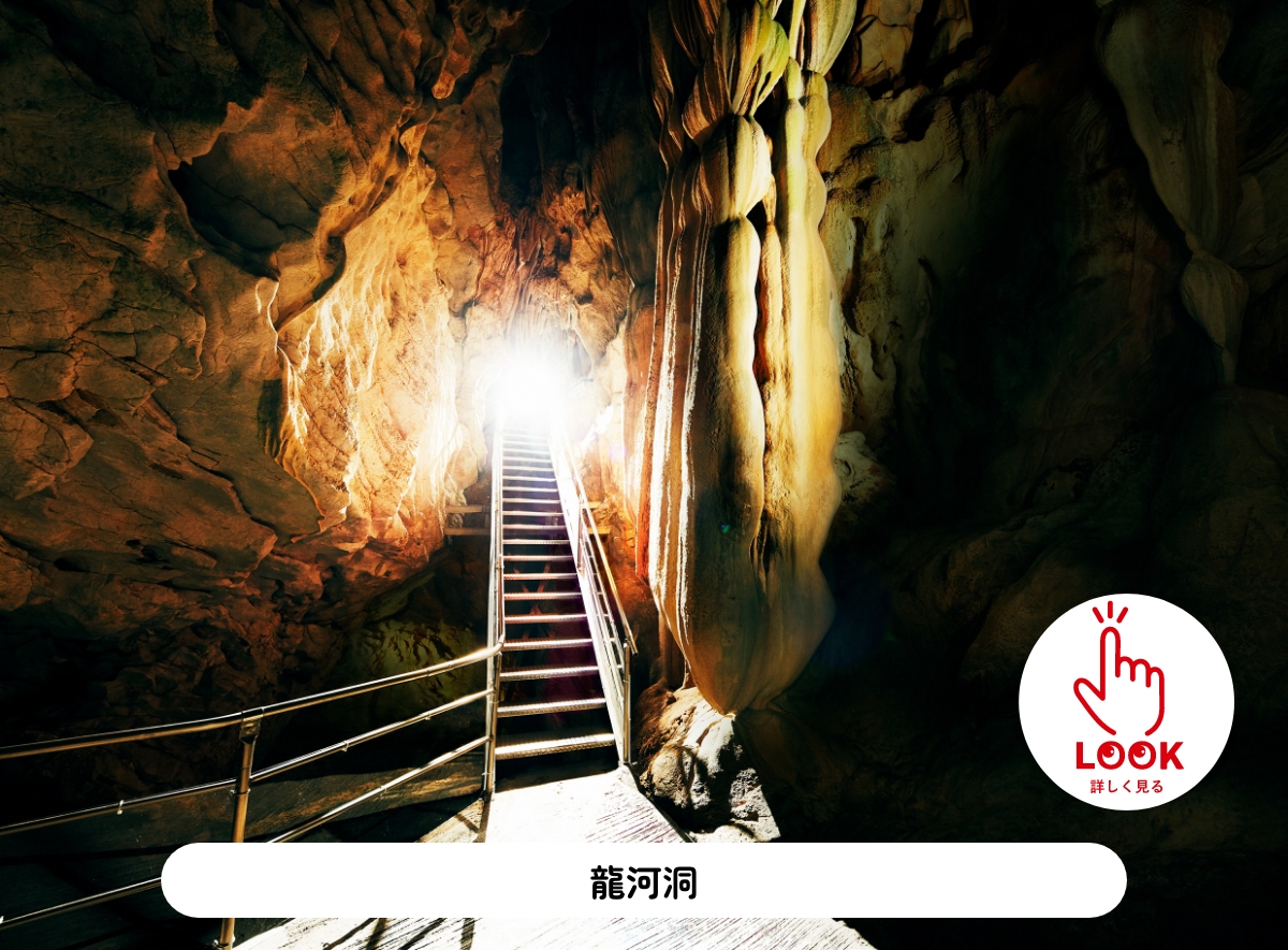 日本三大鍾乳洞の1つで、国指定天然記念物にも指定されている史跡。全長は約4kmもあり、行程約40分の「観光コース」では、天降石や裏見の滝などの石柱石筍を見ることができる。ナビゲーターと真っ暗な洞穴を進む「冒険コース」は前日までに要予約。※洞内は通路が狭いため、ベビーカーは使用不可。
