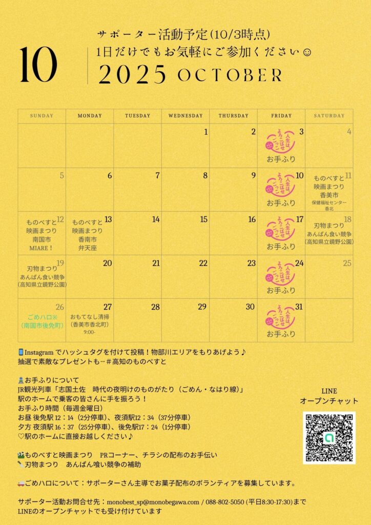ものべすとサポーターズの10月活動予定をお知らせします。
