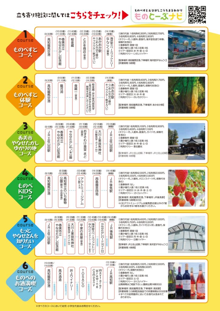 高知龍馬空港を出発して、今年注目の高まるものべがわエリアの各観光スポットを巡ることが出来ます。昼食はご当地グルメ・「中日そば」が有名なとさを商店で。感性とお腹が満たされる一日をお過ごしください。